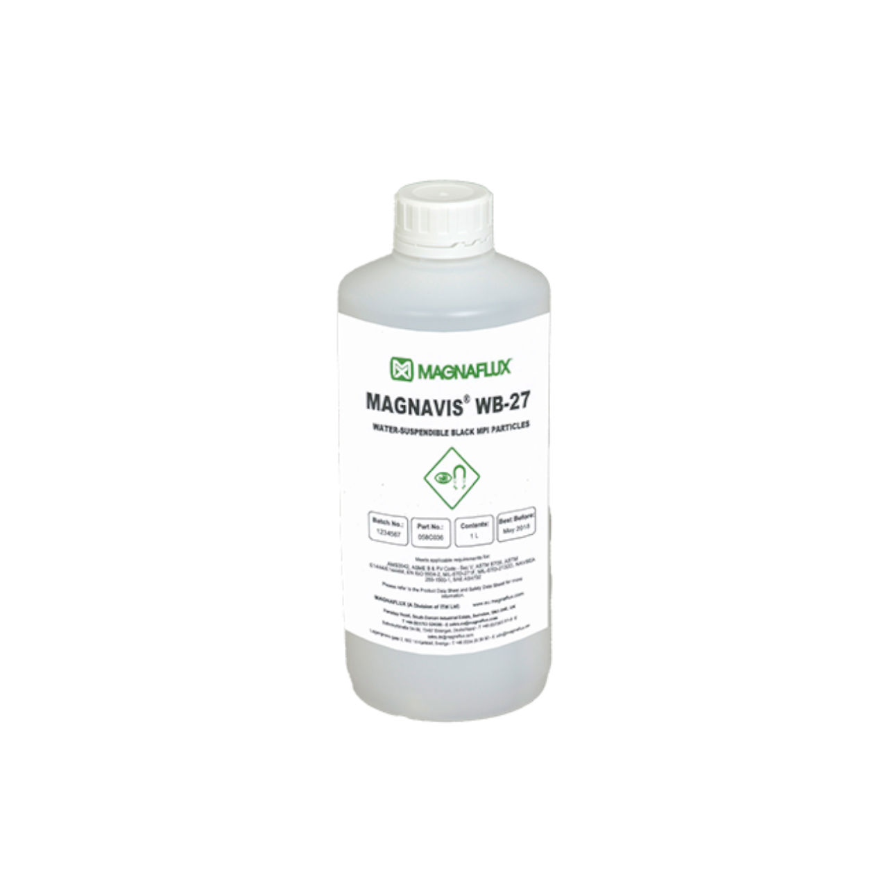 O WB-27 é um concentrado líquido de partículas magnéticas pretas à base de água, projetado para a preparação de banhos destinados ao teste de partículas magnéticas pelo método úmido visível.